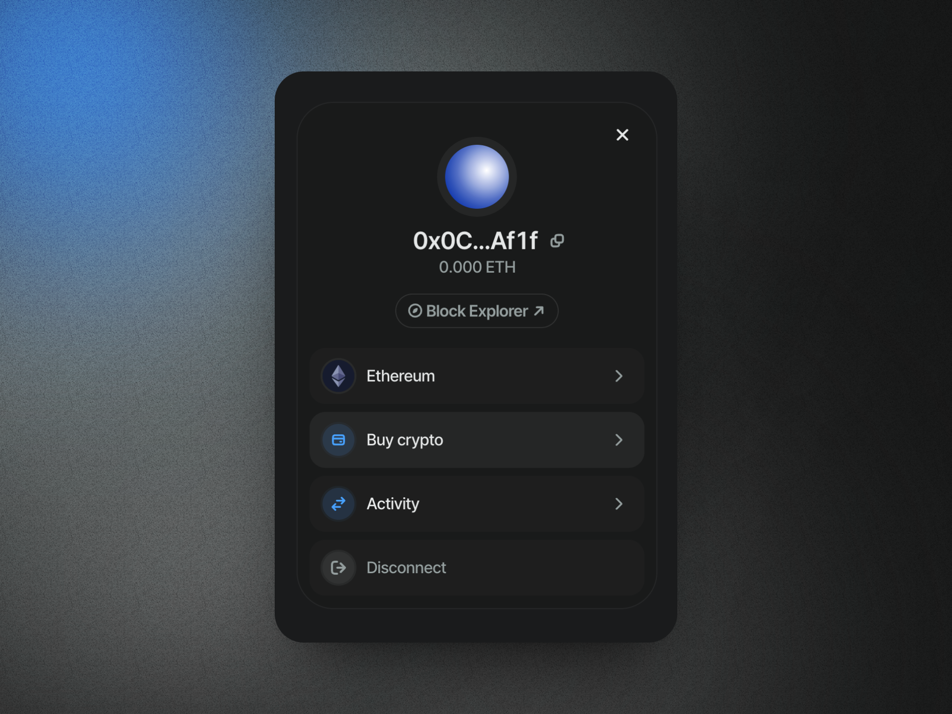 Once connected, select “Buy Crypto” from the wallet modal.