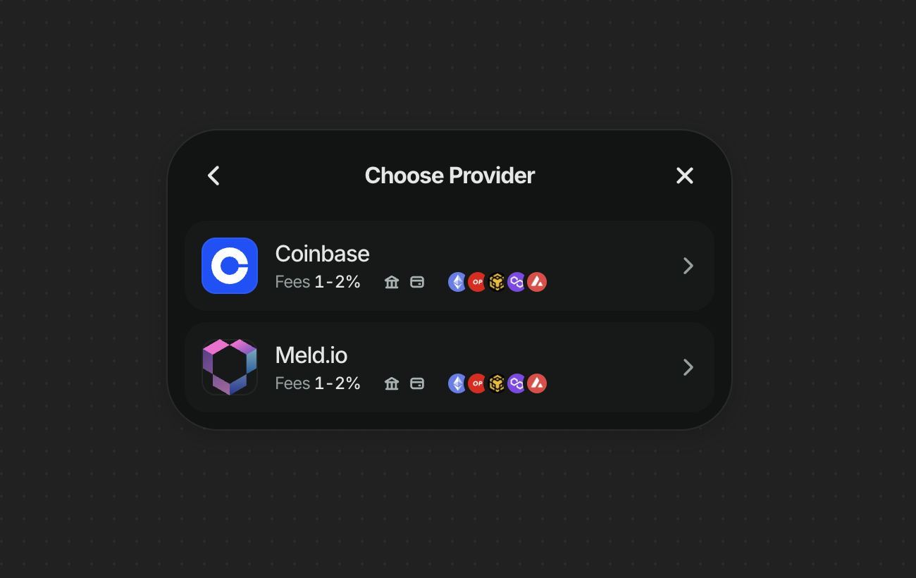 Select “Coinbase” or “Meld” as your provider.