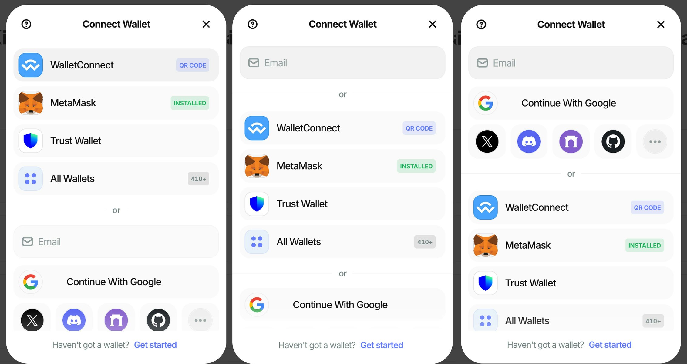 Order of the connection methods in the modal. The default order is['wallet', 'email', 'social'].
