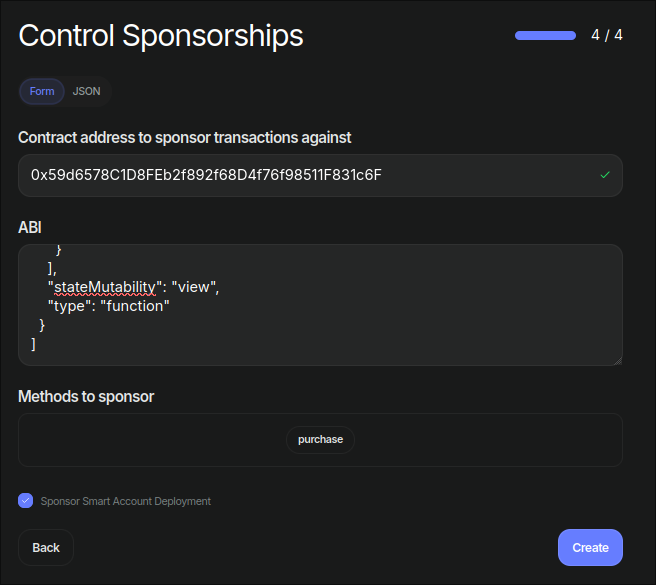 Sponsor Smart Account Deploymentcheckbox. - Click “Create”.